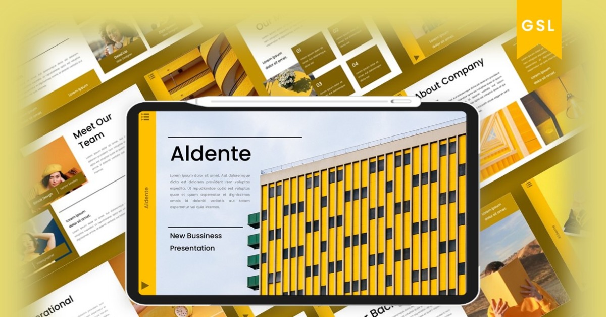 Présentation de **Aldente – Modèle de diapositive Google Business**