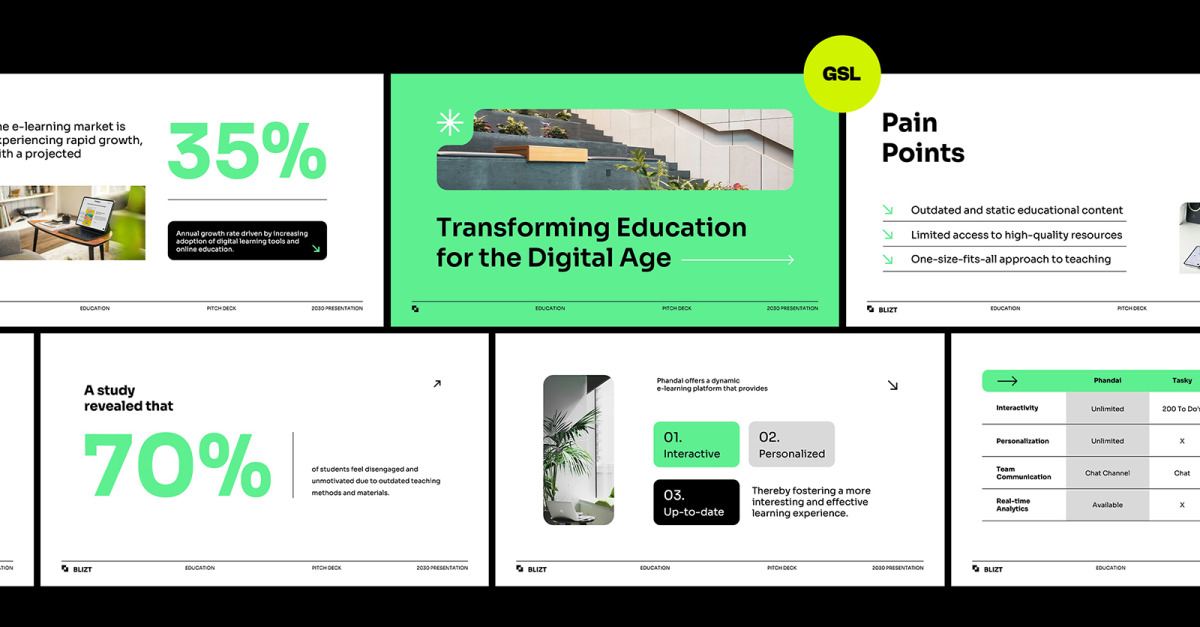 Le modèle de présentation GSL pour le pitch deck technologique éducatif est un modèle polyvalent qui peut être utilisé pour présenter votre entreprise, vos idées créatives, vos projets de startups, votre apprentissage éducatif et bien plus encore. Attirez l'attention de votre public avec notre design professionnel et moderne pour de meilleurs résultats. De nombreuses possibilités sur notre modèle pour correspondre à vos idées de présentation et gagner beaucoup de temps sur la réalisation de présentations. Ce modèle est facile à utiliser, vous pouvez donc le modifier sans tracas.