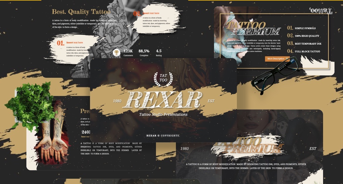 Présentation Rexar - Modèles Google Slides pour studio de tatouage