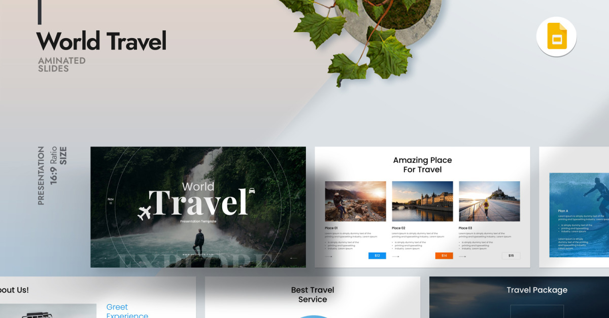 Le modèle Google Slide World Travel vous permet d'ajouter simplement votre logo et vos images et de modifier les couleurs et la typographie de votre marque et vous êtes prêt à partir. Ne perdez pas votre temps, nous avons fait tout le travail pour vous.