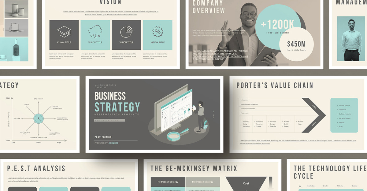 En termes simples, une stratégie d'entreprise est un plan documenté sur la manière dont une organisation s'apprête à atteindre ses objectifs. Une stratégie d'entreprise contient un certain nombre de principes clés qui décrivent la manière dont une entreprise va atteindre ces objectifs. Ce modèle comprend les modèles stratégiques les plus populaires, des matrices et bien d'autres.