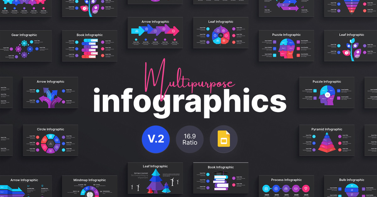 Modèle de présentation Google Slides d'infographie polyvalente (V.2.DARK)