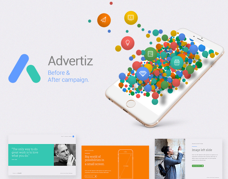 Présentation du modèle de présentation Advertiz Powerpoint, un modèle de présentation publicitaire en ligne complet avec deux versions :