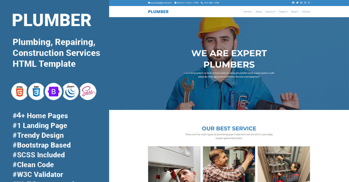 Plombier - Plomberie, Réparation, Construction Modèle HTML spécialement créé pour les plombiers, les appartements, l'architecture, les constructeurs, le bâtiment, le nettoyage, la construction, l'ingénierie, le bricoleur, le nettoyage domestique, l'industrie, l'entretien, la rénovation, le service de réparation, etc. Le modèle de plombier comporte 3 pages d'accueil avec une page de destination. Les pages d'accueil et plus de 16 pages intérieures sont superbes, ainsi que le modèle léger à chargement rapide, conçu à la mode, codé propre, optimisé pour la vitesse, convivial pour les moteurs de recherche et utilisé dans la dernière version du framework Bootstrap. En convertissant ce modèle en WordPress, Joomla, Magento, Laravel ou toute autre technologie, vous le trouverez plus personnalisable. De plus, notre équipe d'assistance dédiée est toujours prête à répondre à vos questions avant-vente et à l'assistance après-vente .