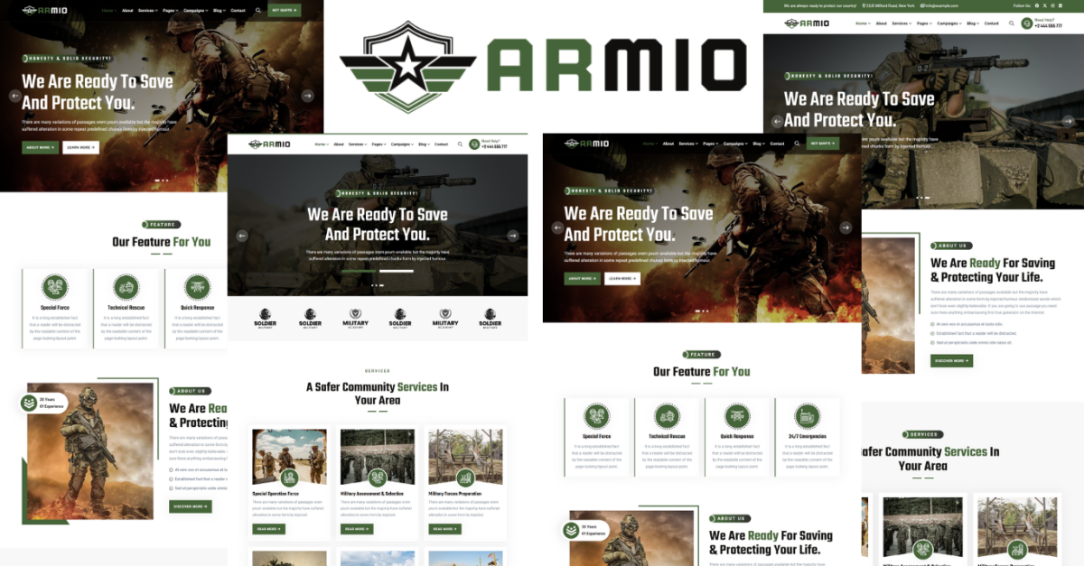 Armio est un modèle HTML5 extraordinaire et incroyablement magnifique. Armio est parfaitement attendu pour le département militaire, les forces militaires, les forces spéciales, les forces armées et les sites associés. La conception parfaite d'Armio est indéniablement appropriée pour tout site militaire et la conception d'Armio offre de nombreux éléments incroyables. La conception et les fonctionnalités claires d'Armio répondront totalement à vos besoins. Toutes les sections de code d'Armio sont particulièrement commentées et le format parfaitement conçu répondra à toutes vos questions. Appréciez la puissance de personnalisation exceptionnelle et un agencement extrêmement gigantesque des composants, fonctionnalités et choix les plus récents pour votre site. Choisissez notre Armio pour un site spécialisé et apparemment captivant qui représente efficacement vos services.