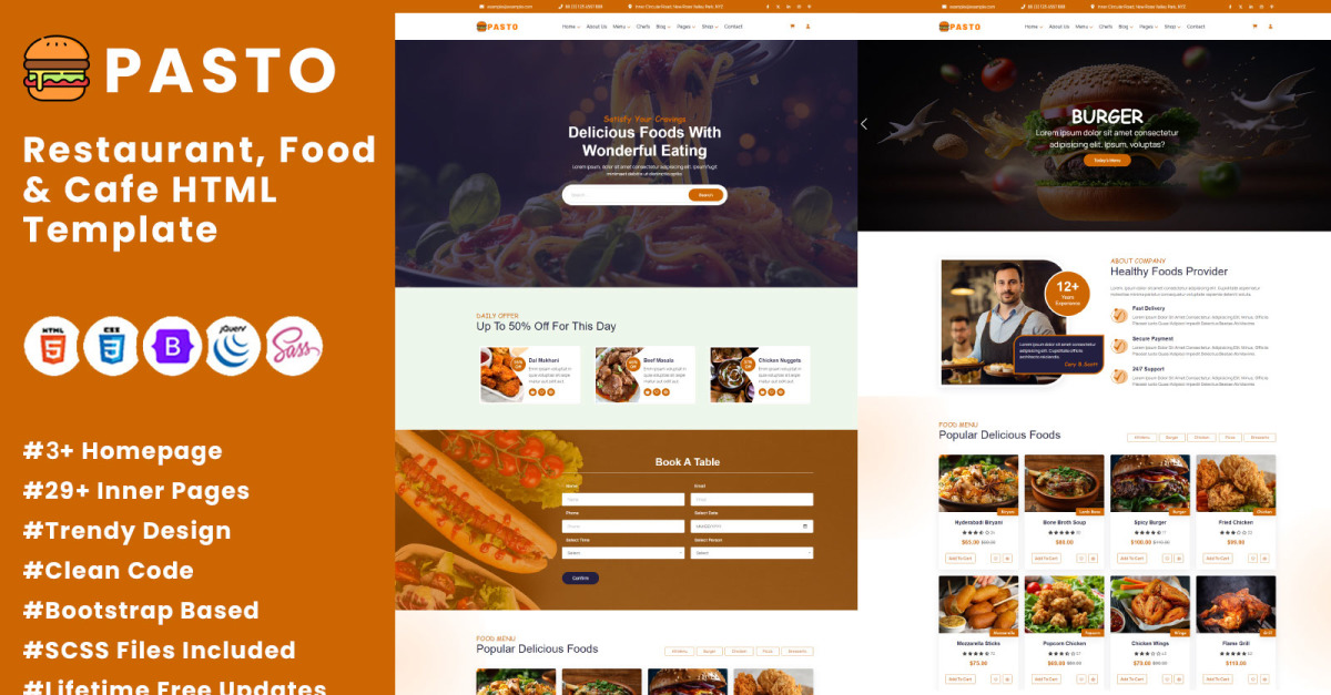 - Construit sur le puissant framework **Bootstrap**, Pasto est entièrement réactif, garantissant que votre site semble impeccable sur n'importe quel appareil, qu'il s'agisse d'un ordinateur de bureau ou d'un mobile.