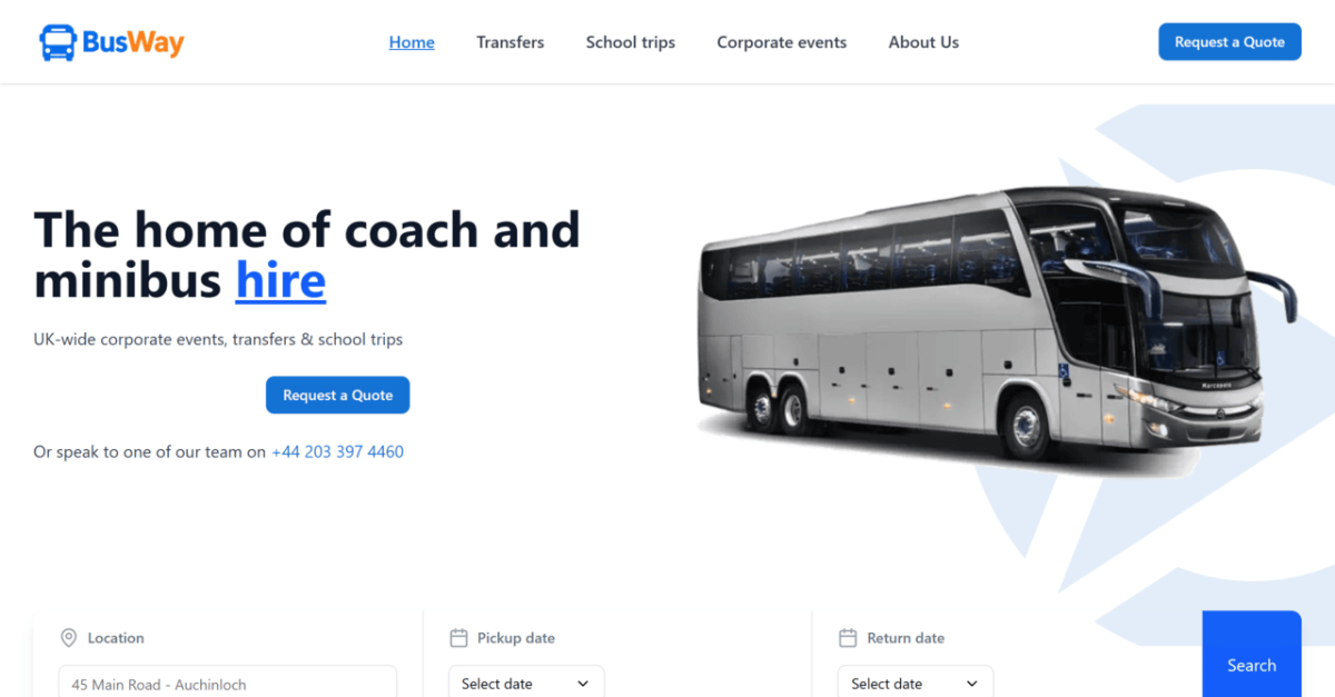 Modèle de site web de location d'autobus et d'autocars Next Js - BusWay