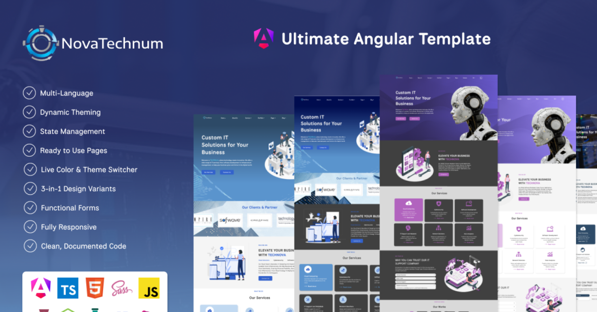 NovaTechnum - Modèle de site Web Angular multilingue, dynamique et prêt à l'emploi
