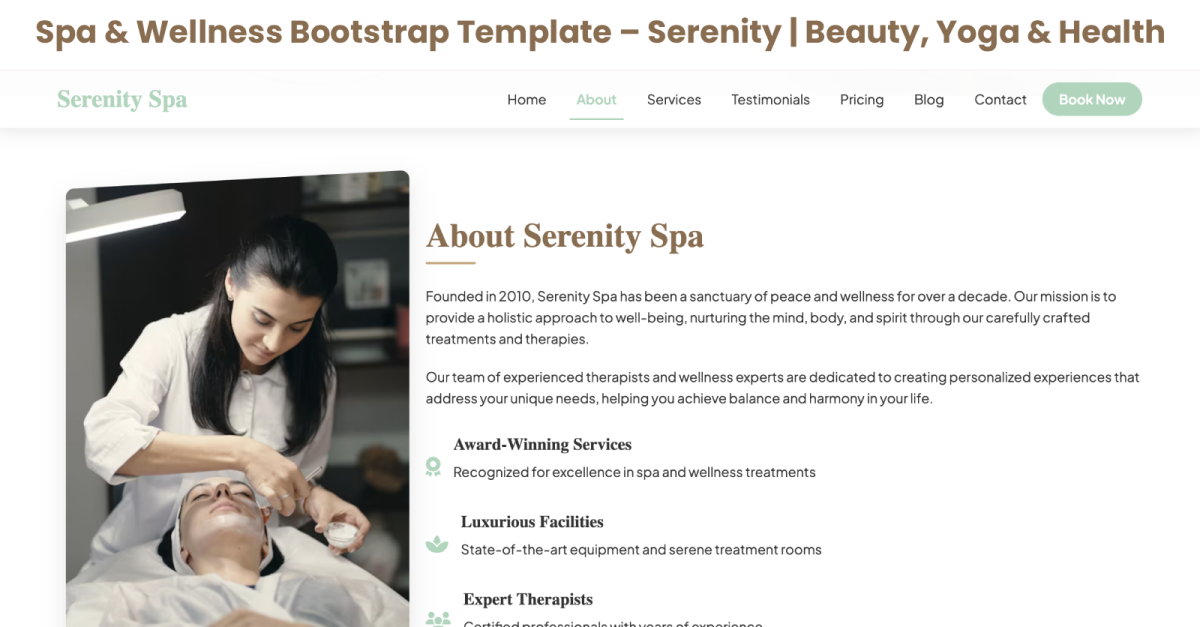 Sérénité – Modèle Bootstrap Spa et Bien-être pour la beauté, le yoga et la santé