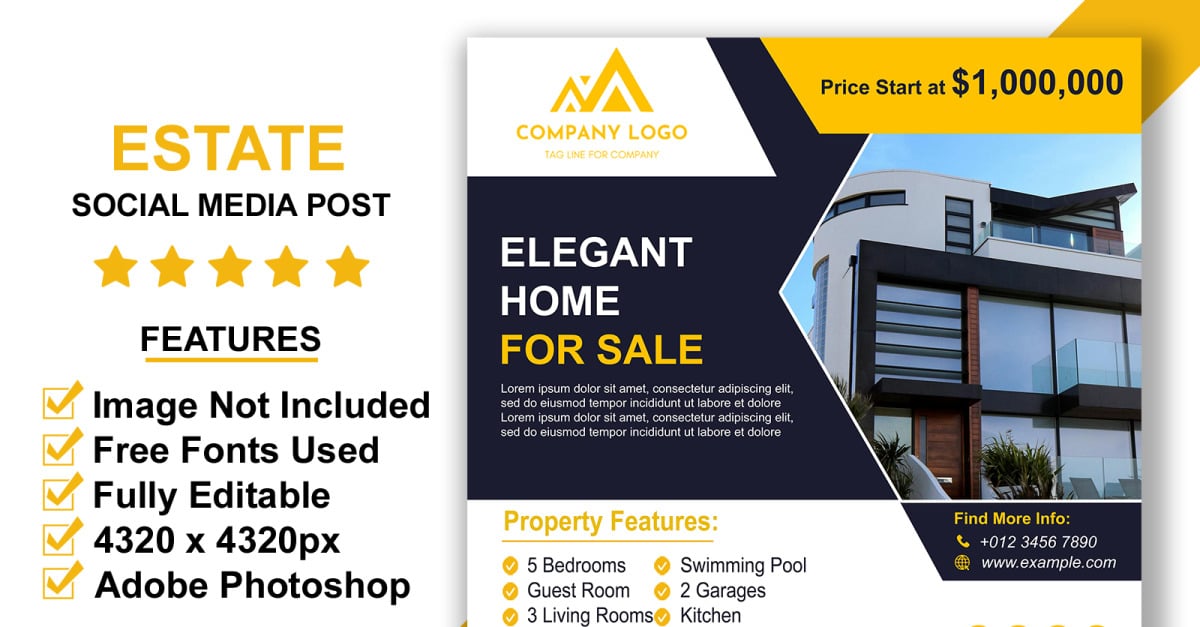 Modèle de publication PSD pour Instagram et Facebook sur l'immobilier, pour la promotion de maisons, de terrains et de propriétés