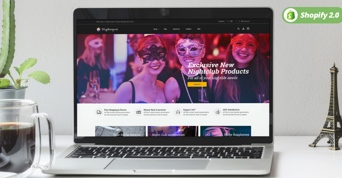 Préparez votre boutique de fête pour la saison estivale avec Nightspot Partywear ! Notre thème Shopify OS 2.0 est un thème accrocheur, magnifiquement conçu et facile à personnaliser qui donnera à votre boutique en ligne un look moderne et élégant. Avec de nombreuses options de personnalisation disponibles et des fonctionnalités avancées telles que la navigation intuitive, la musique de fond et la décoration artistique, vous pouvez rendre l'expérience d'achat de vos clients encore plus spéciale. Faites votre marque sur le monde en ligne avec Nightspot Partywear !