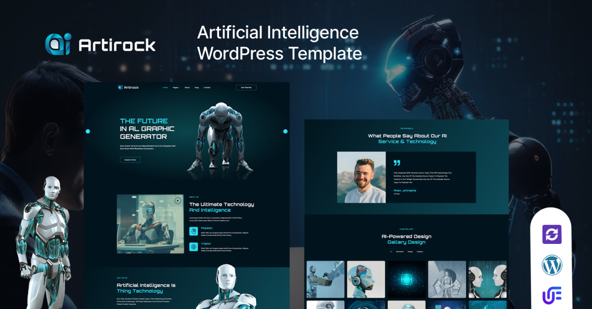 Présentation du thème WordPress de pointe Artirock AI - un compagnon numérique innovant conçu pour révolutionner votre expérience de création de site Web. Conçu avec précision et alimenté par les dernières avancées en matière d'intelligence artificielle, ce thème n'est pas seulement un modèle ; c'est un outil dynamique qui anticipe vos besoins, s'adapte à votre style et élève votre présence en ligne à des niveaux sans précédent.