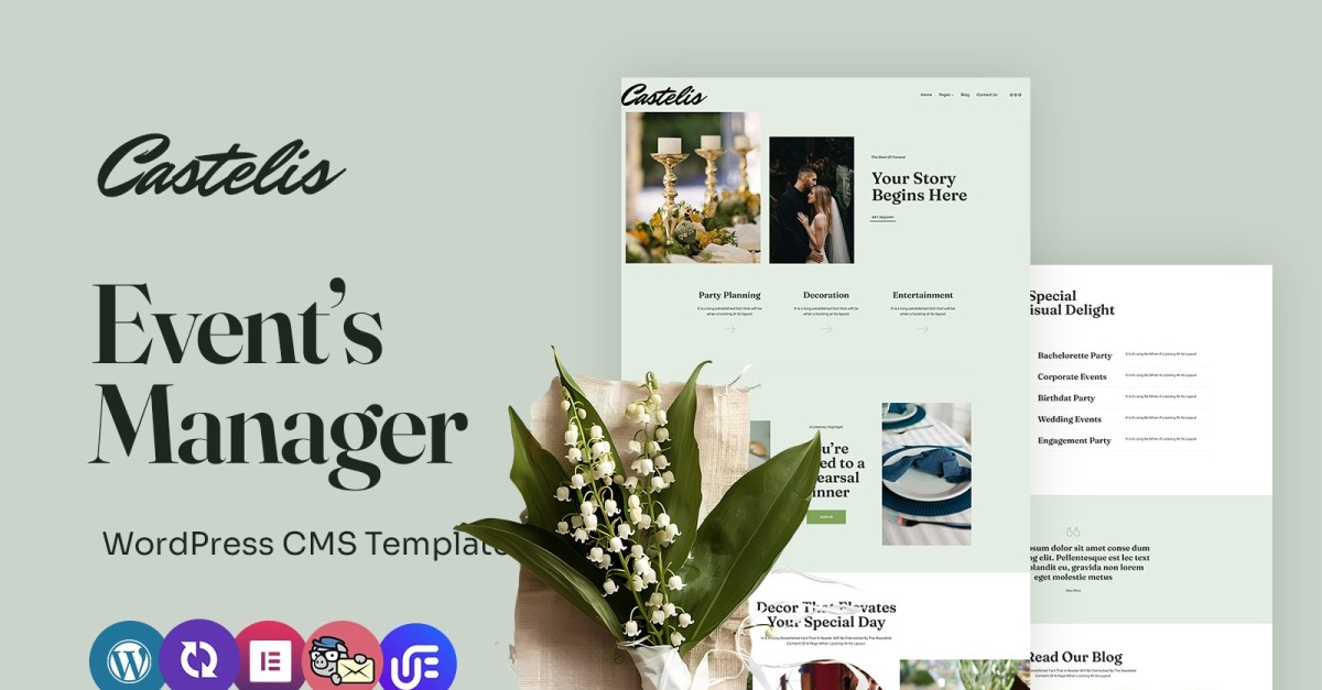 Le thème WordPress « Castelis » est conçu spécifiquement pour les planificateurs et organisateurs d'événements, offrant une plate-forme sophistiquée pour mettre en valeur l'expertise en gestion d'événements. Adapté aux besoins des professionnels, Castelis allie fonctionnalité et esthétique pour offrir une expérience utilisateur exceptionnelle.