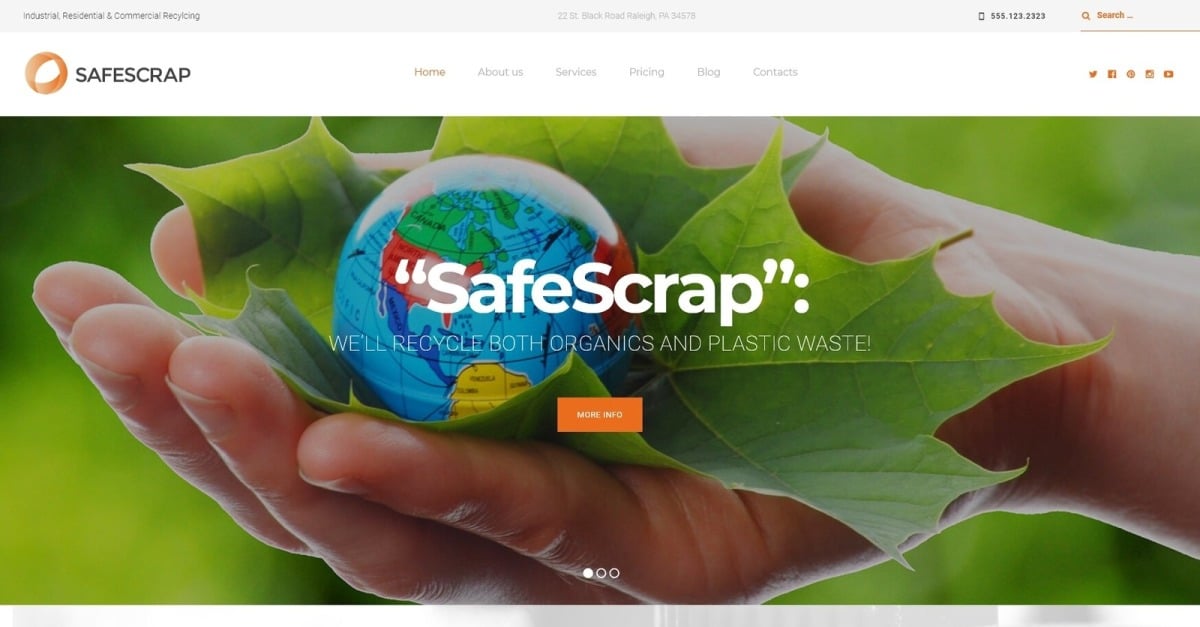 Si vous recherchez un thème WordPress pour votre site Web de services de recyclage, essayez ce thème. Conçu pour un large éventail de niches environnementales, ce modèle peut être un excellent élément de base pour les organisations à but non lucratif, les entreprises d'écologie, les technologies vertes et les entreprises d'énergie alternative. Le thème est facile à utiliser et à personnaliser. Avec l'aide de WordPress Live Customizer, vous pouvez facilement modifier la palette de couleurs de votre site Web, personnaliser la typographie, choisir parmi une collection de combinaisons de pied de page et d'en-tête prêtes à l'emploi, ainsi qu'ajuster et personnaliser la mise en page de votre blog. Avec WordPress Customizer, vous pouvez prévisualiser toutes les modifications que vous apportez en direct, sans recharger votre page. Présentez les services que vous fournissez à vos clients à l'aide du plugin Cherry Services. Affichez les services à la fois sur votre page d'accueil ainsi que sur une page dédiée de votre choix. Grâce à une conception réactive, vos visiteurs pourront facilement visualiser votre site Web sur les appareils mobiles et les tablettes. Avec une documentation complète et un chat d'assistance 24 heures sur 24, 7 jours sur 7, ce thème peut devenir le bon choix pour votre organisation environnementale. Il s'agit d'un modèle WordPress de Parallax Business Bureau