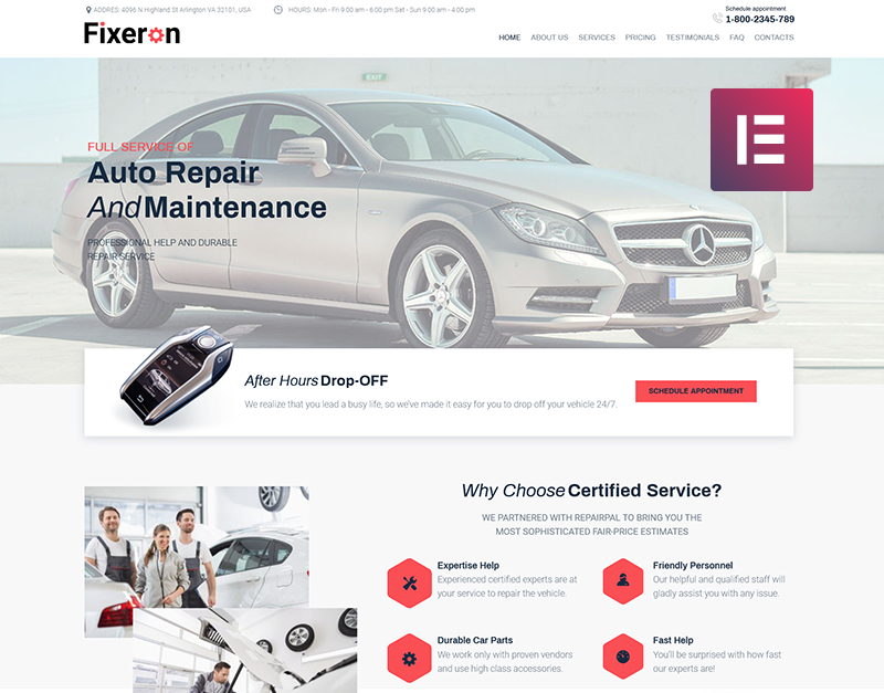 Fixeron - Thème WordPress Elementor de réparation de voiture