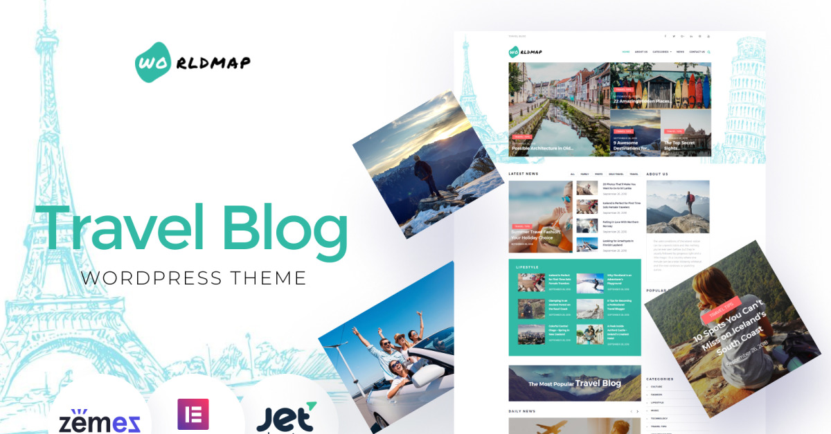 WorldMap - Thème WordPress Elementor pour blog de voyage