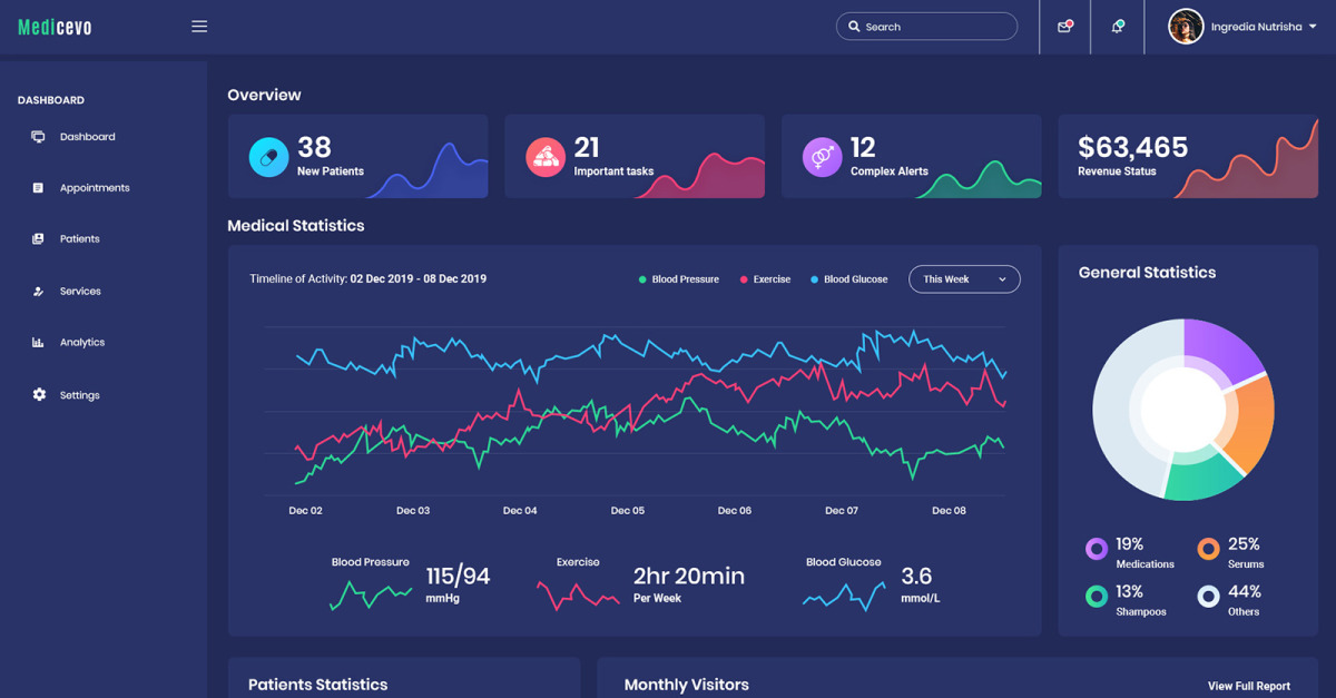 Medicevo - Kit d'interface utilisateur du tableau de bord médical