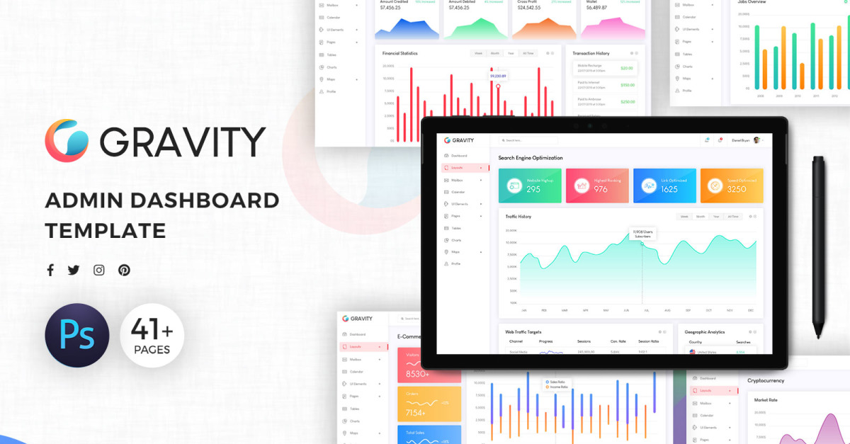 Éléments de l'interface utilisateur du tableau de bord d'administration de Gravity - Caractéristiques de l’image 1