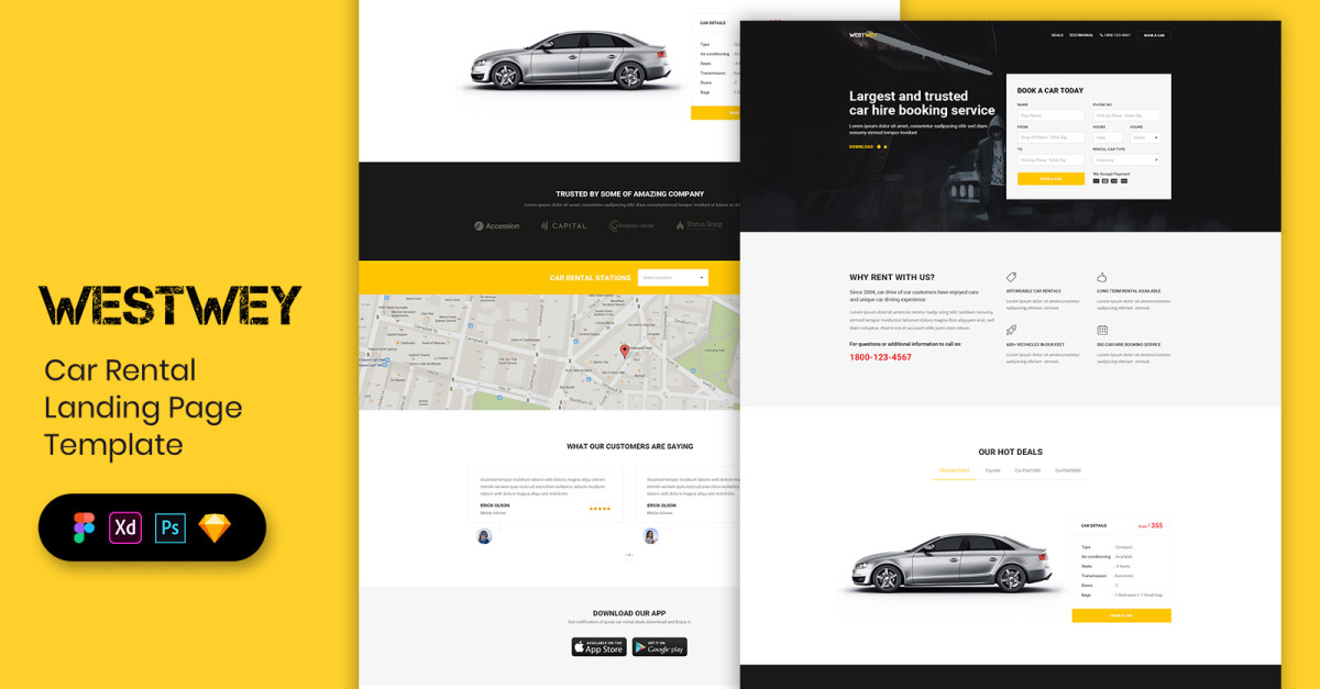 Éléments de l'interface utilisateur du modèle de page de destination de location de voiture