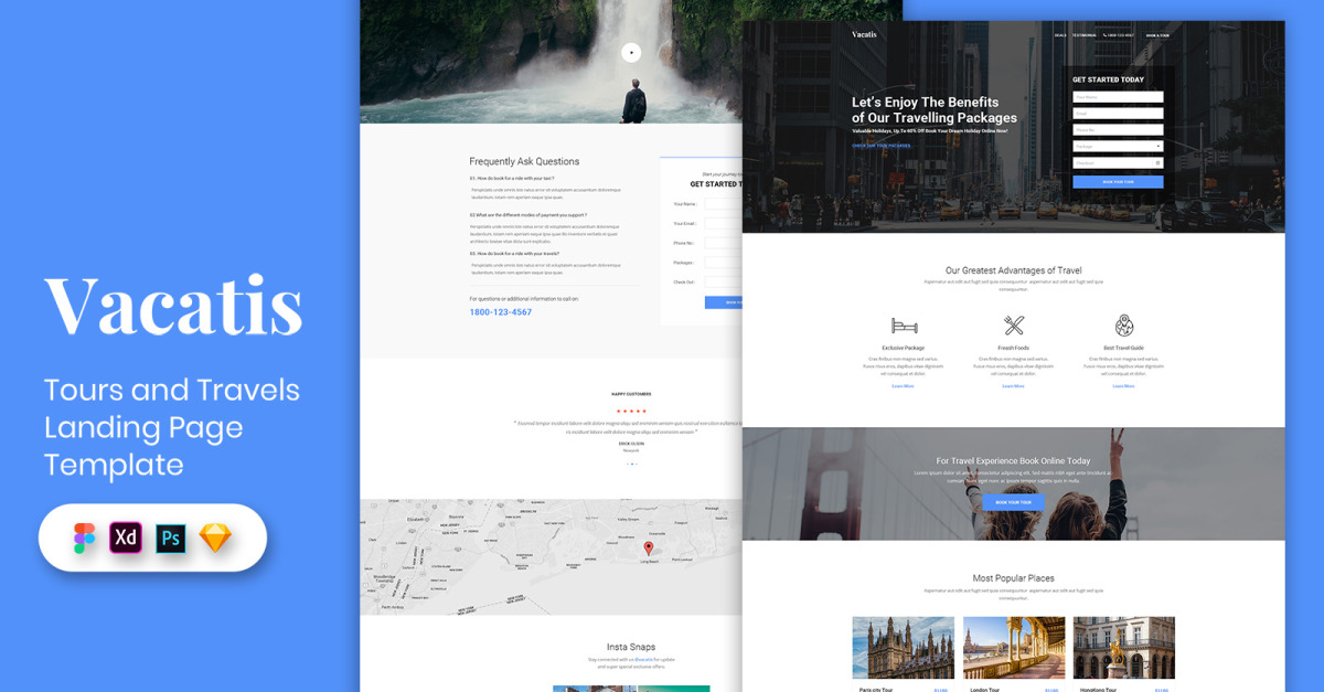 Éléments de l'interface utilisateur du modèle de page de destination Tour et Voyages