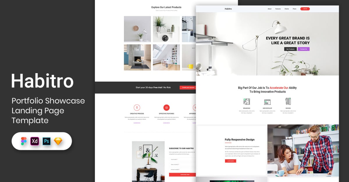 Éléments de l'interface utilisateur du modèle de page de destination Portfolio Showcase