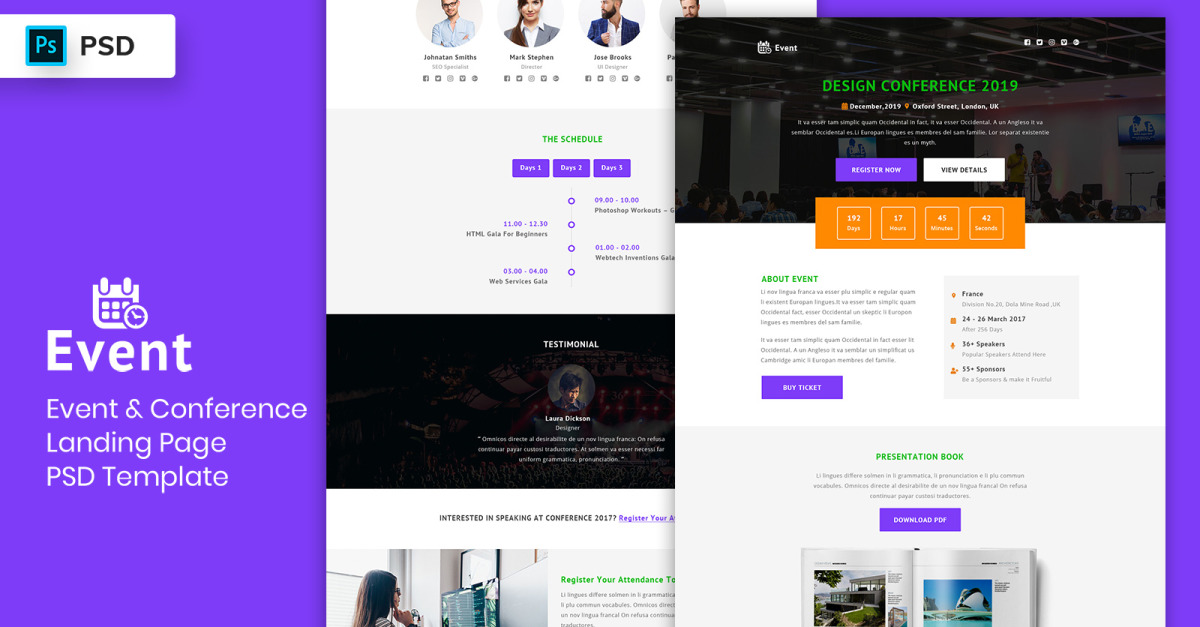Éléments de l'interface utilisateur du modèle de page de destination d'événement et de conférence