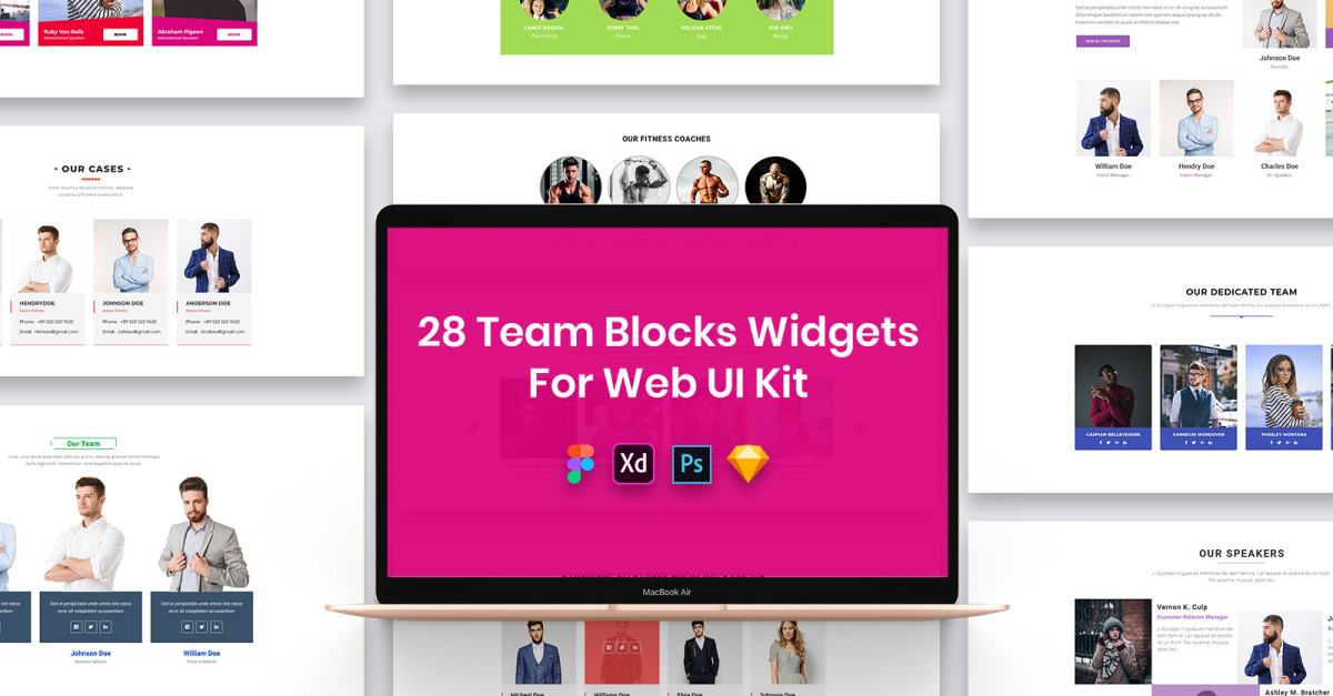 28 Widgets de blocs d'équipe pour le kit d'interface utilisateur Web