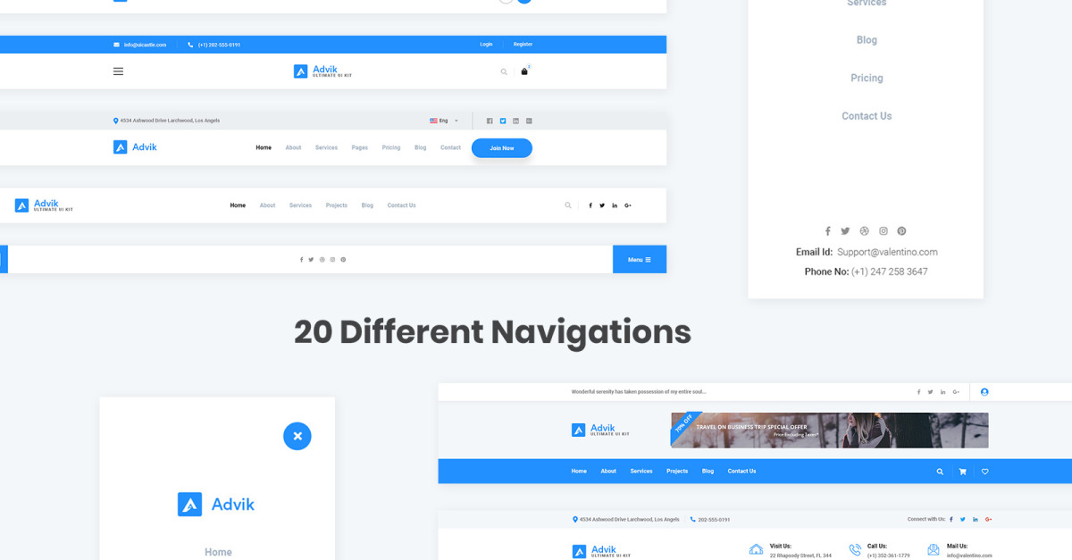 20 Navigations pour le kit de l'interface utilisateur Web