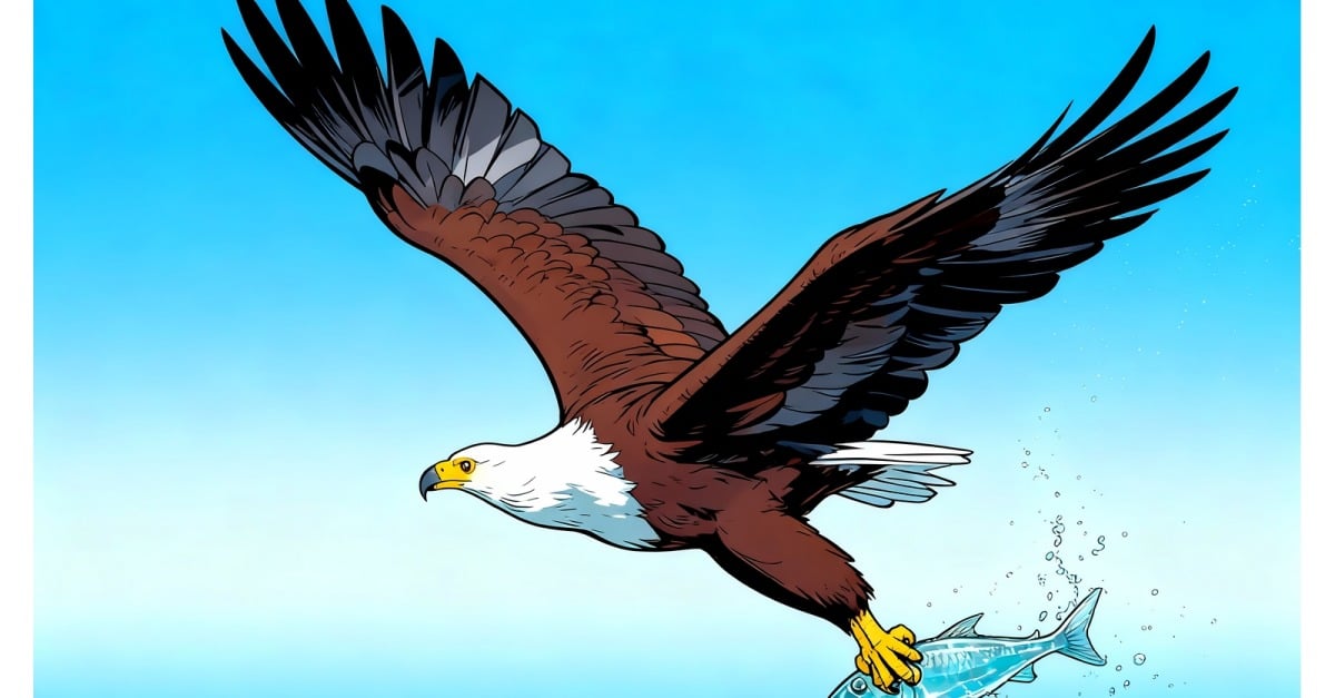 Aigle pêcheur africain en vol avec un poisson dans ses serres (Illustration IA + Dessin vectoriel) - Caractéristiques de l’image 1Aigle pêcheur africain en vol avec un poisson dans ses serres (Illustration IA + Dessin vectoriel) - Caractéristiques de l’image 2