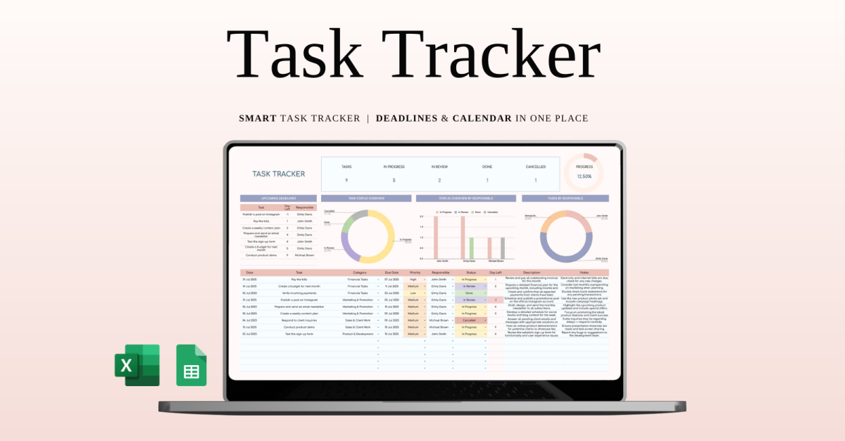 Feladatkövető sablon táblázatkezelő a Google Táblázatokhoz és az Excelhez