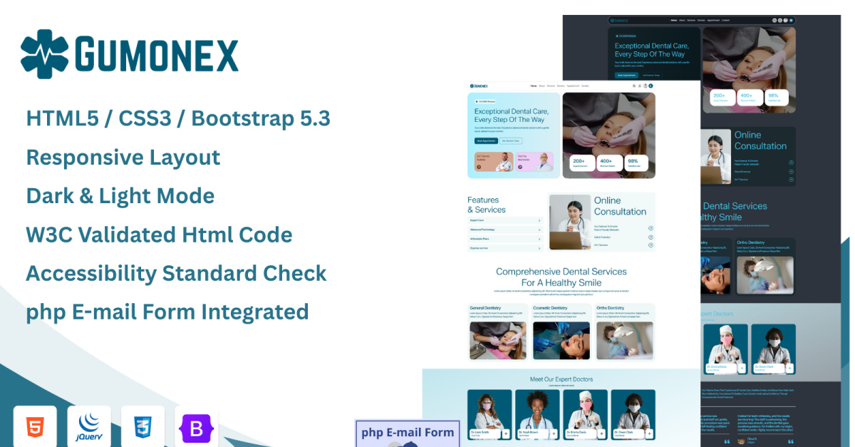 Gumonex - HTML landing page weboldal sablon fogászati klinikához