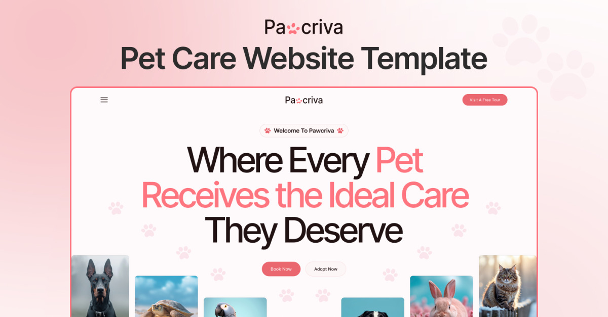 Pawcriva – Kisállatgondozás Next.js weboldal sablon