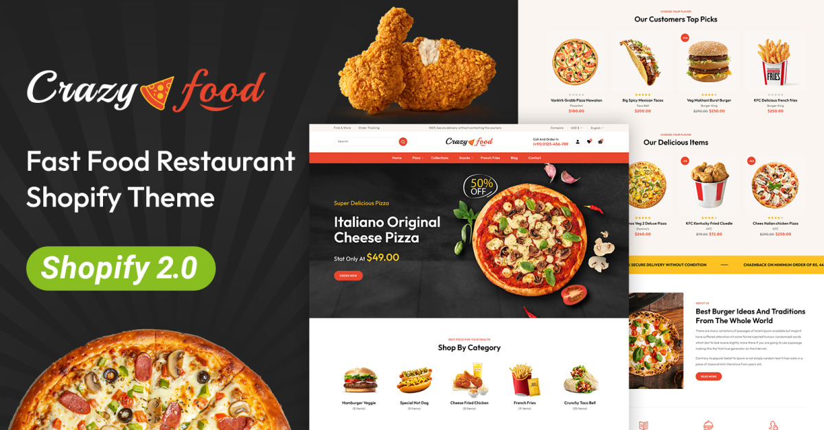 Crazyfood – Gyorsétterem bolt Shopify 2.0 reszponzív téma