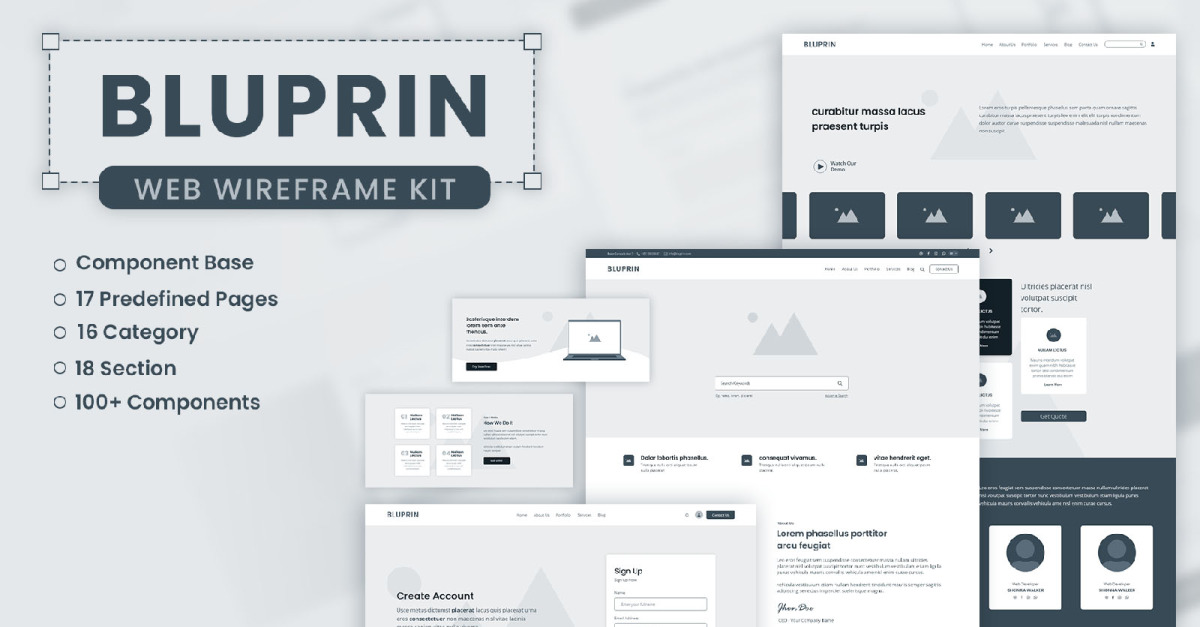 BLUPRIN - Adobe XD drótvázkészlet webes felhasználói felület elemekhez - Features Image 1