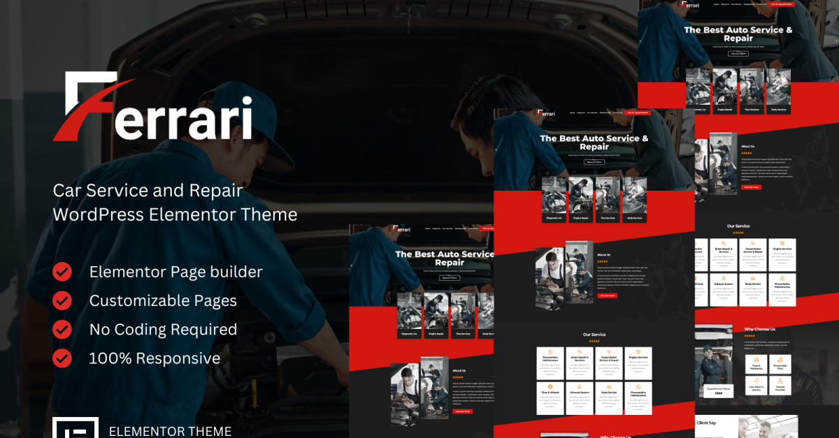 Ferrari - Autójavítás Wordpress Elementor téma