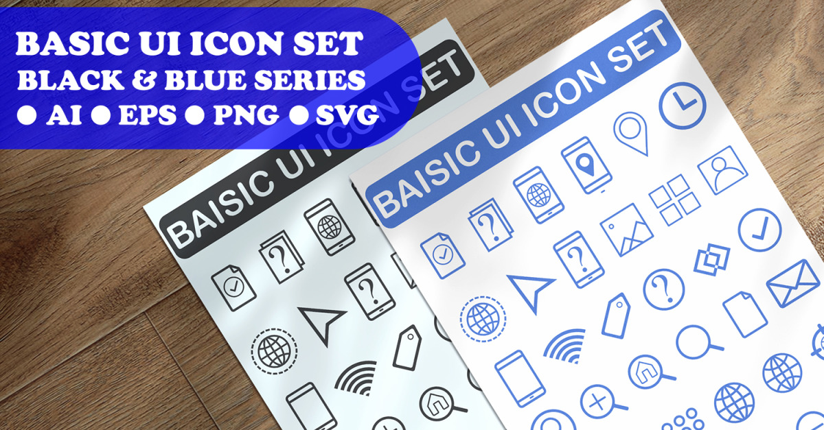 Basic Ui Icon Set Template Black And Blue Series
