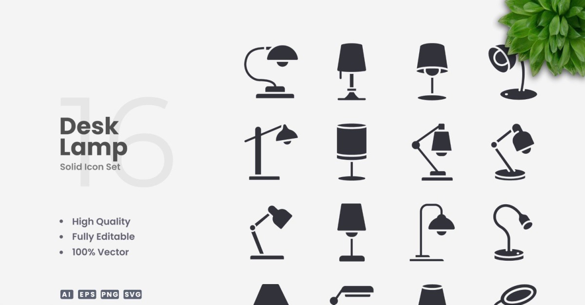 16 Desk Lamp Solid Icons Set