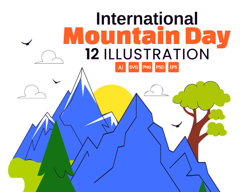 International Mountain Day Vector Illustration Celebrated on December 11, Featuring Mountain Landscape, Green Valleys, and Trees in a Flat Background Suitable for Poster, Web Banner, Brochure, Landing Page and Others Background Template Features:
