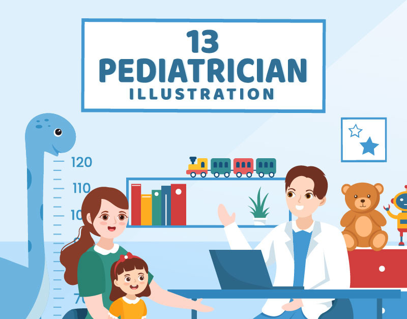 Pediatrician Examines Sick Kids and Baby for Medical Development, Vaccination and Treatment in Flat Cartoon Hand Drawn Background Illustration Suitable for Poster, Banner, Brochure and Others Template Features: