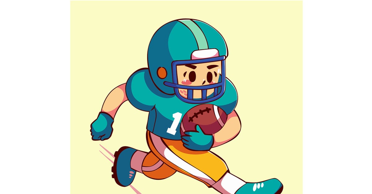 **This illustration is a cartoon of an American football player running while carrying a ball. This relates to sports, specifically American football**