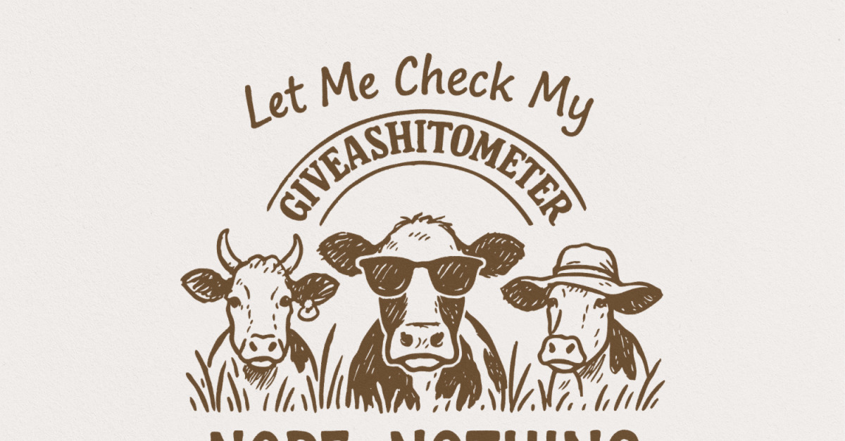Funny Cow Giveashitometer PNG, Digital Download Clipart, POD File, Scrapbooking, Watercolor