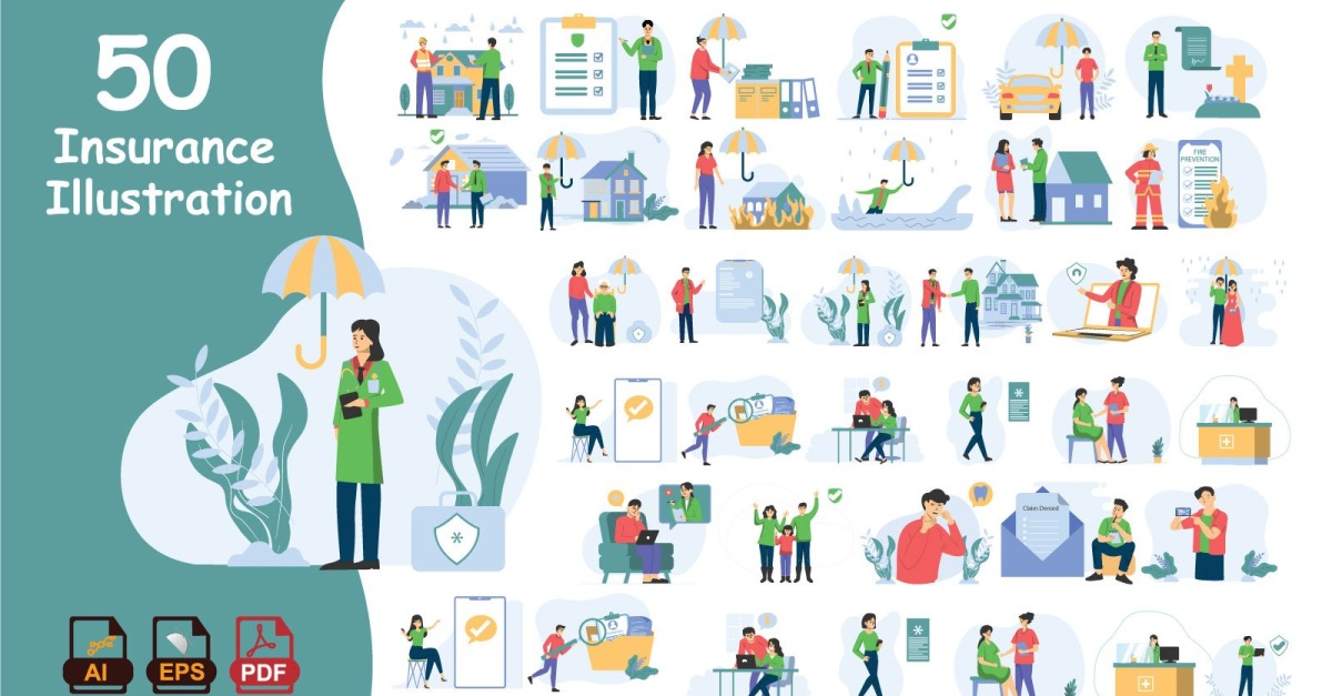 Insurance Illustration Pack | Life, Health, Car, Home, Travel & Business Coverage Designs
