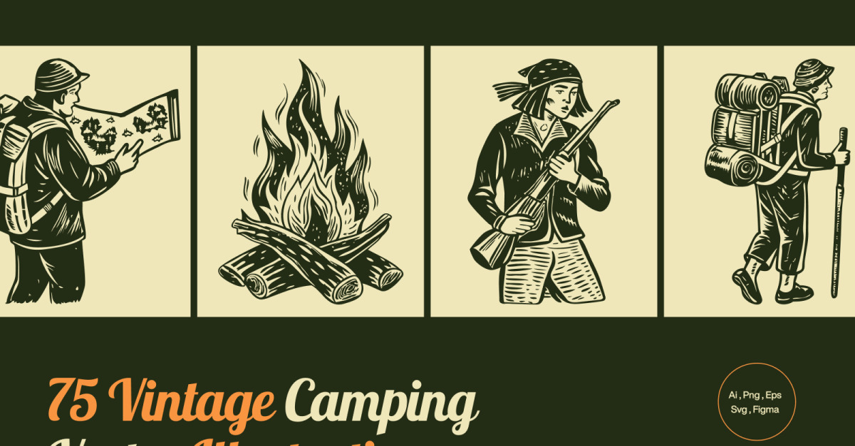 Get ready to channel the spirit of the great outdoors with this vintage camping illustration set. From cozy tents and classic lanterns to forest animals and retro gear, this sketchy style collection adds nostalgic charm to your creative projects. Perfect for posters, invites, websites, and more. Whether you're designing for a rustic wedding or a hiking brand, this pack has your back, all in high-quality vector and raster formats.