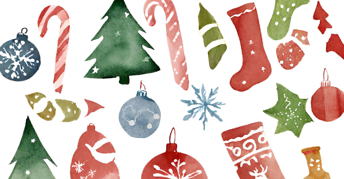Modello senza cuciture di Natale dell'acquerello con alberi e fiocchi di neve dell'acquerello 5 € Scaricare