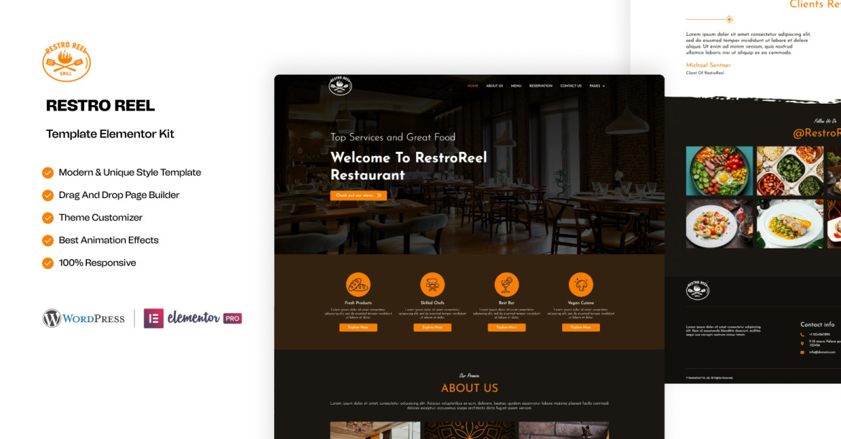 Restro Reels – Kit modello Elementor per ristoranti WordPress