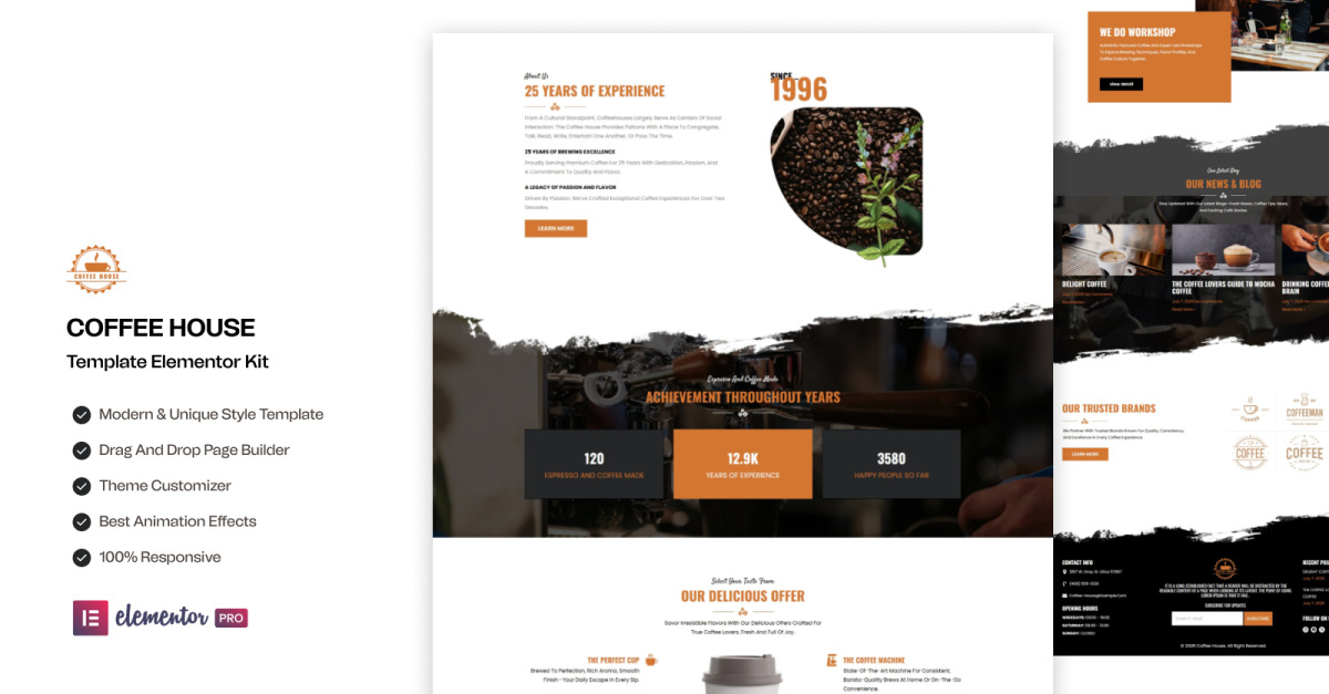 Coffee House - Kit Elementor pronto all'uso per bar e caffetteria