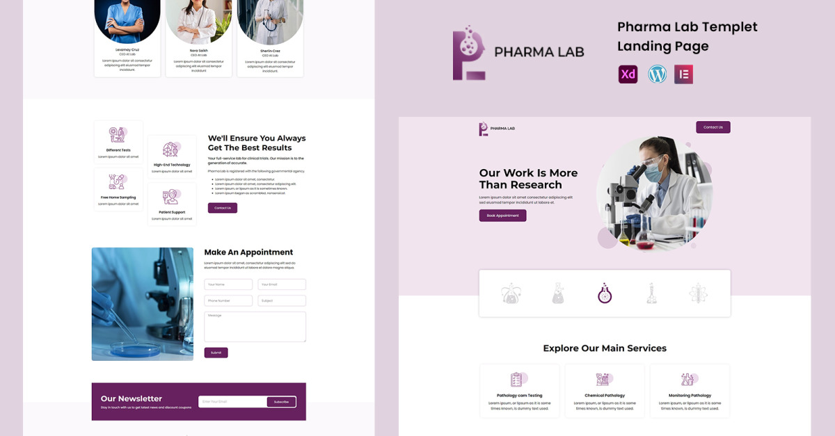 Pharma Lab - Servizi di laboratorio pronti per l'uso Elementor One Page Template