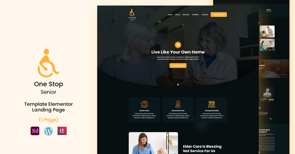 One Stop Senior - Modello Elder Care Elementor