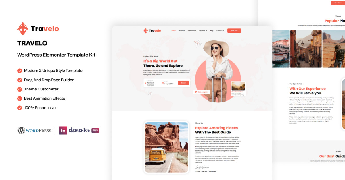 Travelo – Kit modello WordPress Elementor per tour e viaggi