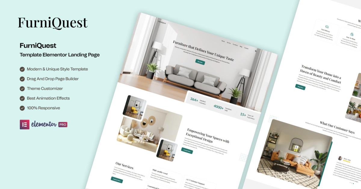 FurniQuest - Pagina di destinazione Elementor di servizi per mobili